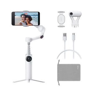 Flow 2 is a must-have tool for the everyday content creator. A seamless solution for capturing every moment, wherever you are. Enjoy and creat more shoots easily with AI Tracker bundle that comes with Insta360 AI Tracker that allows for native tracking in any phone. Additionally, the AI Tracker features a built-in spotlight with nine different light effects for low-light shooting. Pocket-sized and ready to film, anytime, anywhere. With all your tools in one, there's no need for any extra gear. And with 1-step rapid deployment, easy NFC paring, just mount your phone, unfold and Flow 2 is ready to go. Featuring an all-in-one design and Deep Track 4.0 technology, Flow 2 effortlessly keeps your subjects perfectly centered in every shot. Capture everyday activities, kids, pets, travel adventures, and more, faster and smoother than ever. Selfie or groupie time? Whip out the selfie stick for easier, more flexible shooting. Get your whole crew in the shot or switch up the view in your clips with high and low shooting angles. Plus, Flow 2 features a sturdy built-in tripod that significantly enhances stability and durability for outdoor filming. With so many more features like Teleprompter, Pro Framing Grid, Apple Watch and smart phone remote control, built-in cimematic effects, AI editing, Smart wheel control, and amazing accessories you can pair up with Flow 2, this gimbal is your personal photographer and videographer anytime, anywhere.