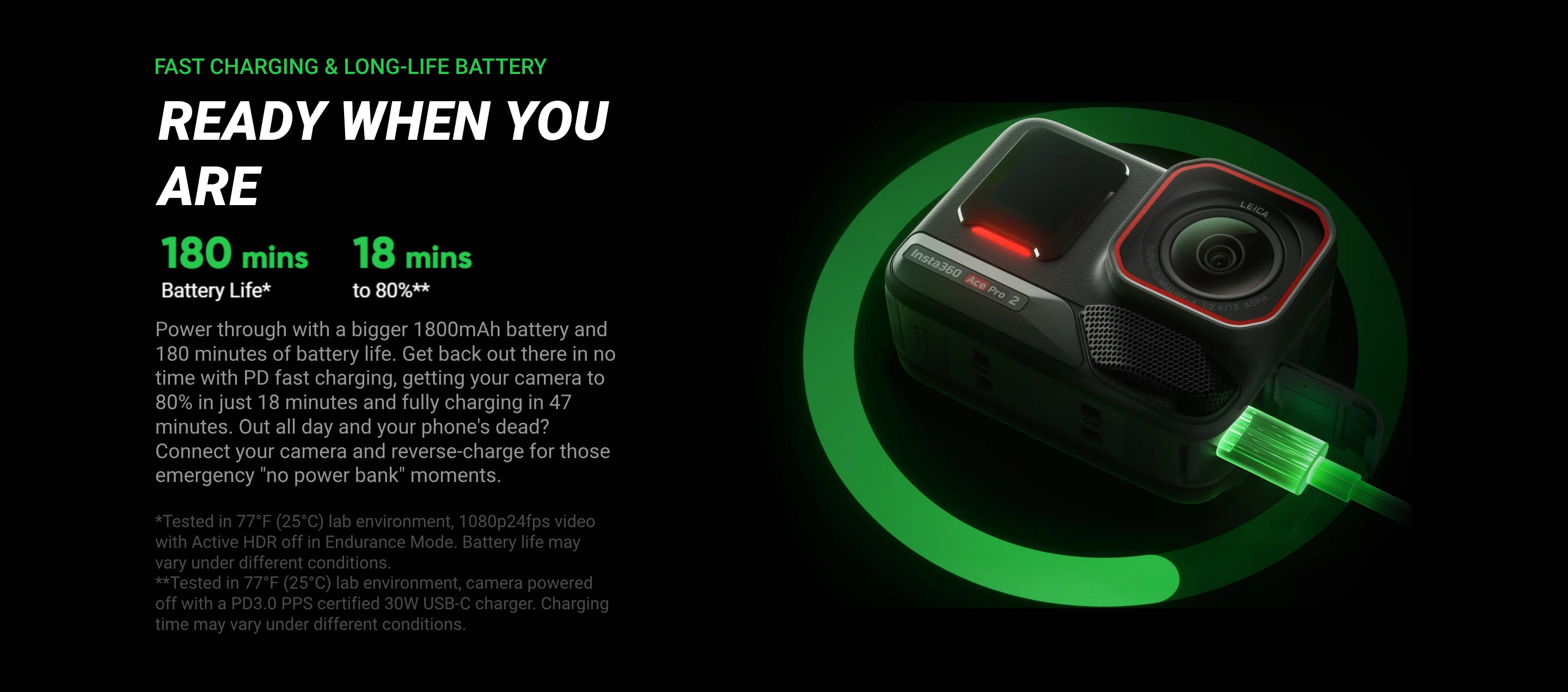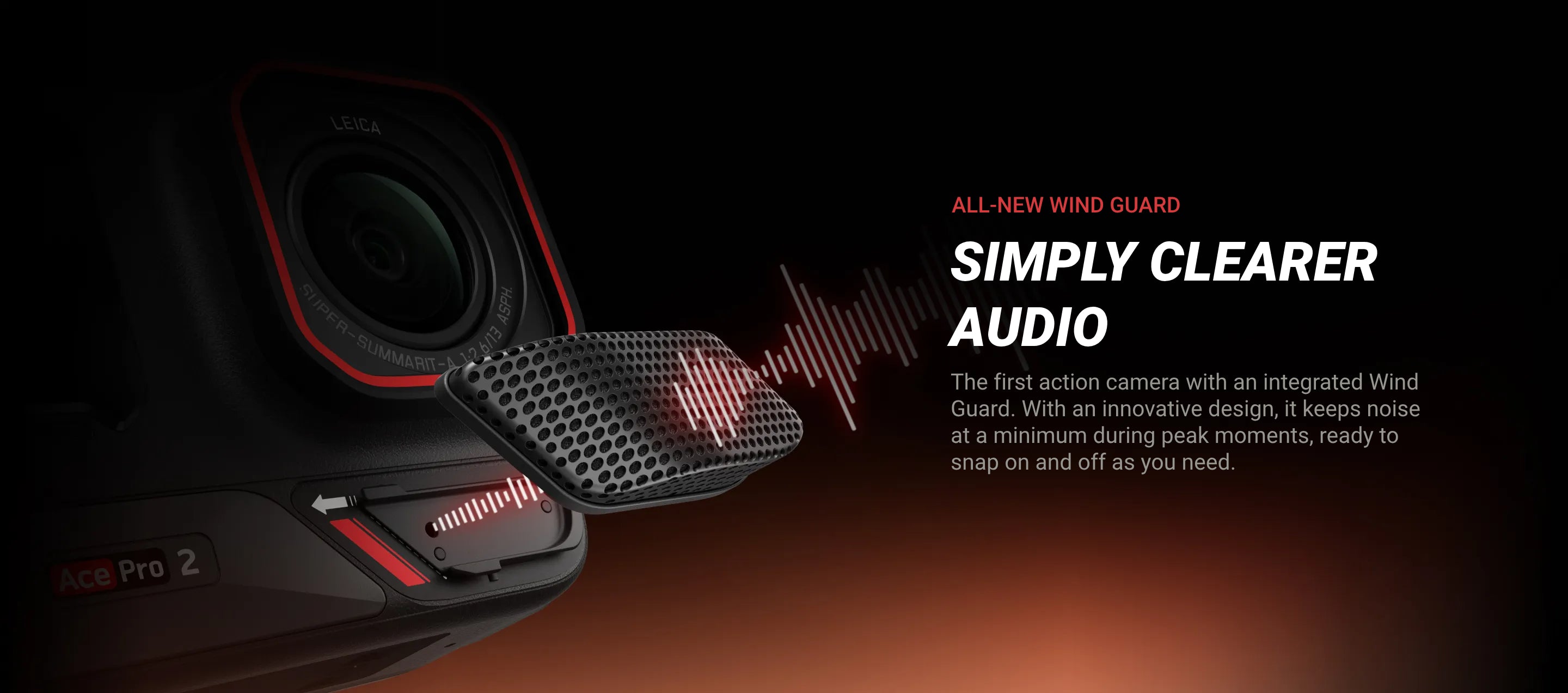- READY FOR ACTION: Waterproof to 39ft (12m), an all-new Wind Guard for clearer audio, a fast-charging battery, and a removable Lens Guard make Ace Pro 2 an action specialist. Super smooth FlowState Stabilization and a 157° wide-angle lens make POV shots more immersive than ever
