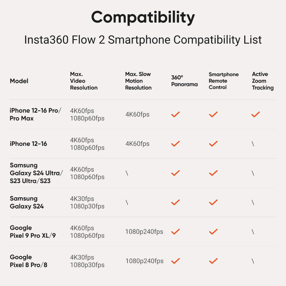 Flow 2 is a must-have tool for the everyday content creator. A seamless solution for capturing every moment, wherever you are. Enjoy and creat more shoots easily with AI Tracker bundle that comes with Insta360 AI Tracker that allows for native tracking in any phone. Additionally, the AI Tracker features a built-in spotlight with nine different light effects for low-light shooting. Pocket-sized and ready to film, anytime, anywhere. With all your tools in one, there's no need for any extra gear. And with 1-step rapid deployment, easy NFC paring, just mount your phone, unfold and Flow 2 is ready to go. Featuring an all-in-one design and Deep Track 4.0 technology, Flow 2 effortlessly keeps your subjects perfectly centered in every shot. Capture everyday activities, kids, pets, travel adventures, and more, faster and smoother than ever. Selfie or groupie time? Whip out the selfie stick for easier, more flexible shooting. Get your whole crew in the shot or switch up the view in your clips with high and low shooting angles. Plus, Flow 2 features a sturdy built-in tripod that significantly enhances stability and durability for outdoor filming. With so many more features like Teleprompter, Pro Framing Grid, Apple Watch and smart phone remote control, built-in cimematic effects, AI editing, Smart wheel control, and amazing accessories you can pair up with Flow 2, this gimbal is your personal photographer and videographer anytime, anywhere.
