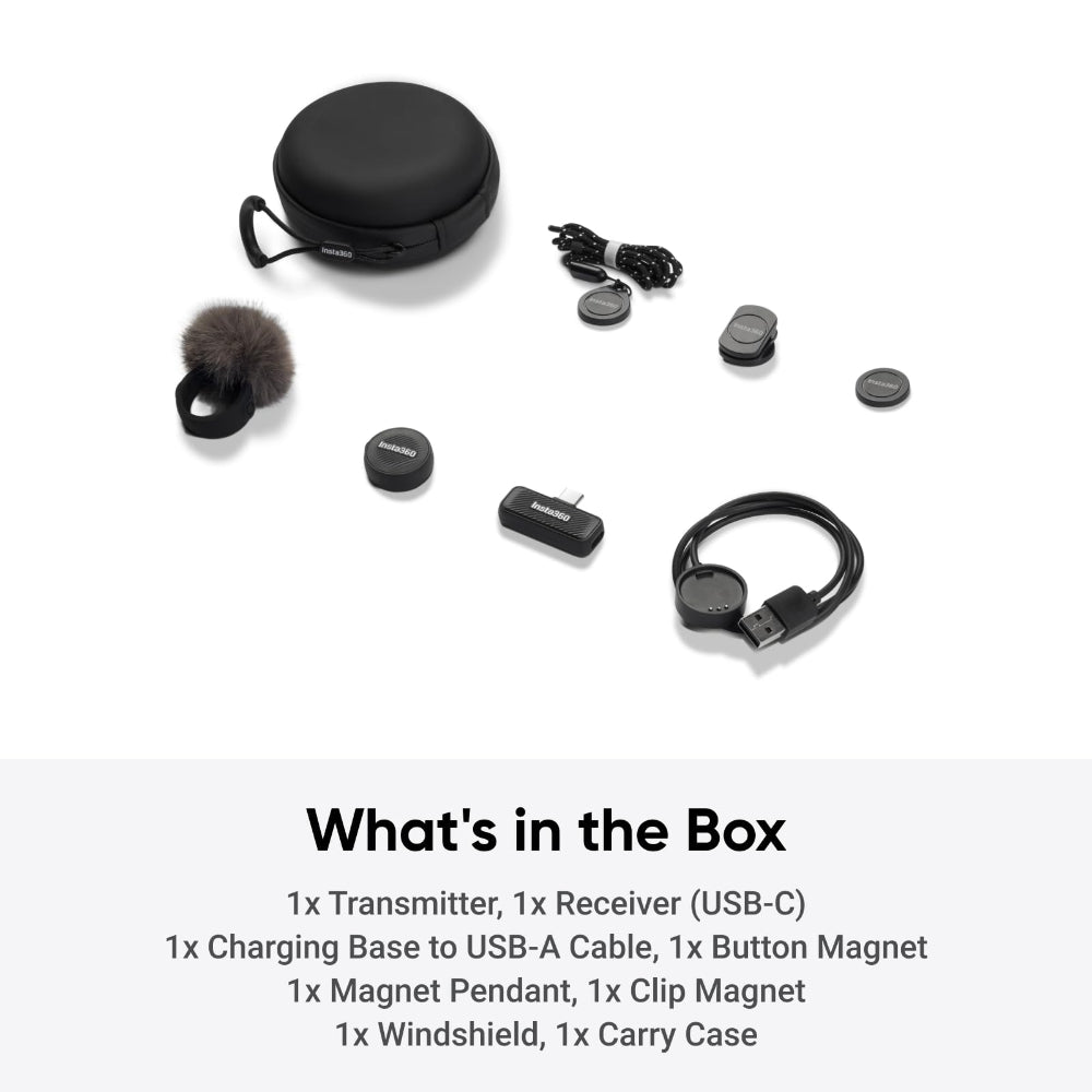 - COMPACT BUNDLE: Compact wireless mic system tailored for creators using Insta360 and USB-C devices. Lightweight at 7.9g mic transmitter and plug-in wireless receiver gets the job done easily with USB-C devices.